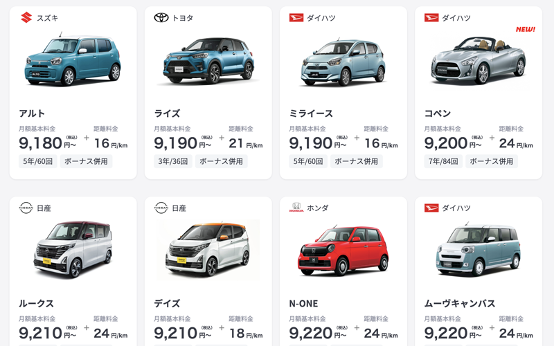 走った分の料金は1kmごとに上乗せされますが、車種や契約年数、プランによって1kmごとの料金は変わります。